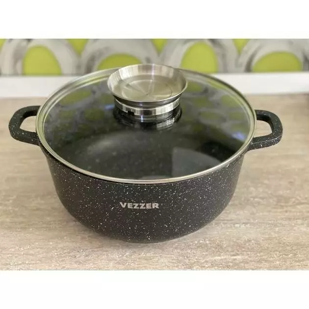 Каструля Vezzer, кругла, скляна кришка, антипригарне покриття,