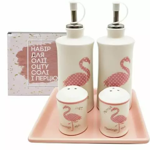 Набір 5пр 700-06-13 Фламінго 2пляшки для оліі\оцту,набір для солі,перцю,підс