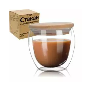 Стакан з подвійною стінкою та бамбуковою кришкою 250ml 201-25