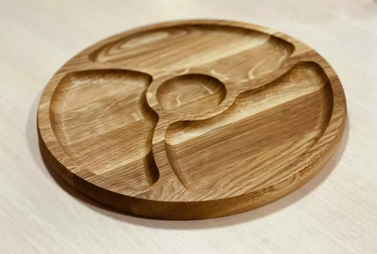 тарілка деревяна на 3 секції з соусом 30см